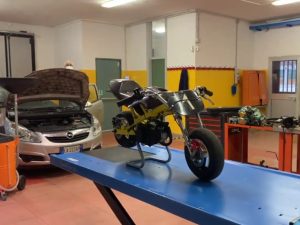 L’autofficina è attrezzata per permettere a studenti e studentesse di mettersi alla prova quotidianamente nelle operazioni di riparazione e manutenzione dei sistemi meccanici ed elettromeccanici del veicolo.