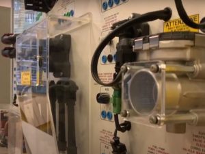 Il laboratorio di diagnostica, grazie a dei pannelli di simulazione, permette a studenti e studentesse di imparare a diagnosticare errori e guasti che si possono verificare sul pannello dell’auto.